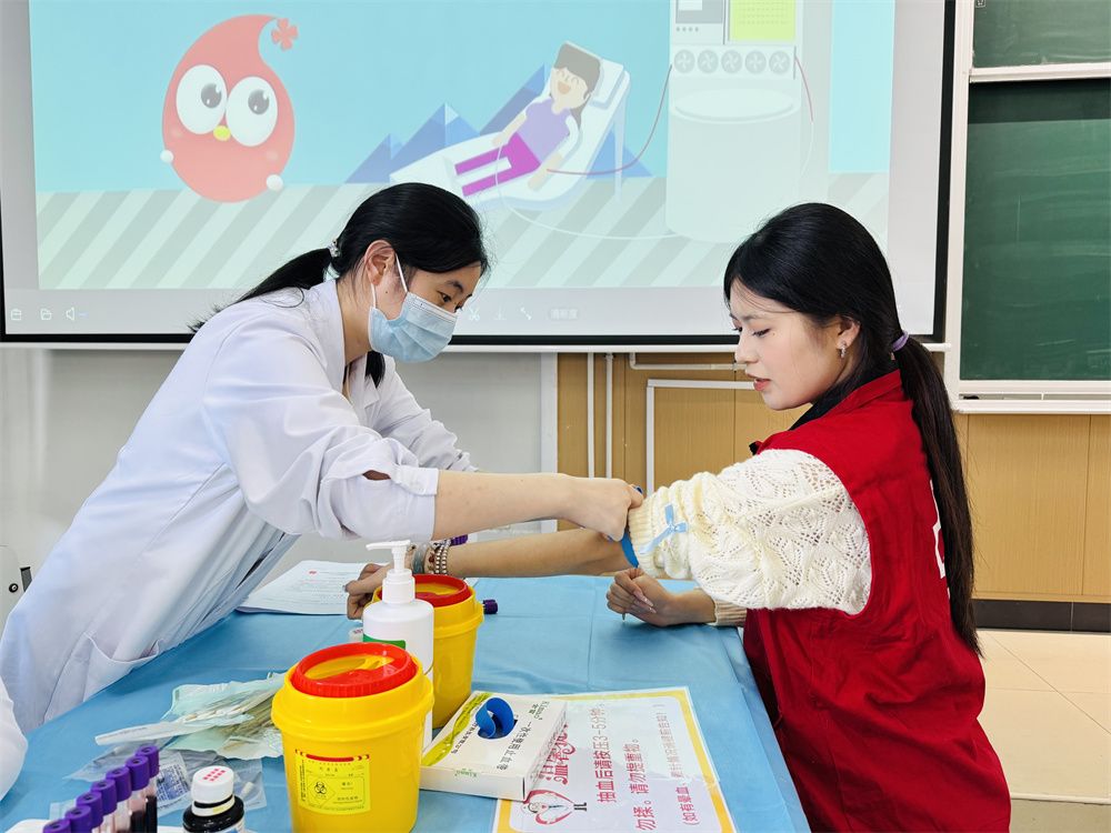 今日球盟会团结天津市白10字会正在校内乱举行了“制血做细胞捐赠意愿者血样采撷”公益举动。这次举动以宏扬“人性、专爱、贡献”的白10字肉体为目标,招呼师死参加中华骨髓库,为血液病患者供给性命新生的盼望。