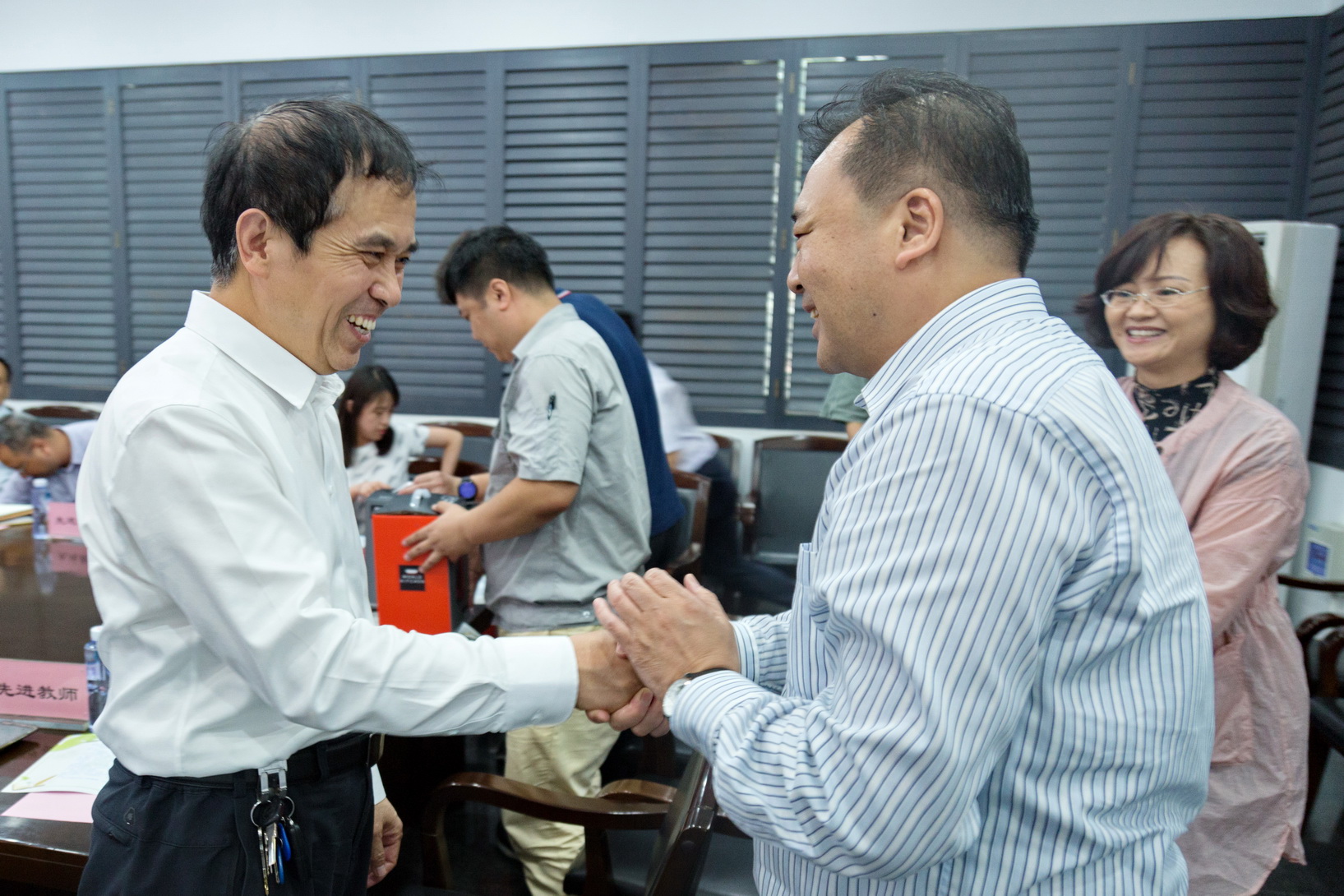 林永秋、宋裕庆等9实教员别离从教书育人、办理效劳、自己生长阅历等圆里,瓜分履历,泛论费力搏斗、做事创业的任务进程,表达歌颂故国、戴德黉舍的情怀。年夜家对于黉舍党政指导及工会对于劳模先辈的存眷闭爱显露忠心感激,并默示正在此后的任务中要持续进展劳模肉体战工匠肉体,动员战引颈恢弘教员工为黉舍的各项事迹做出新的奉献。