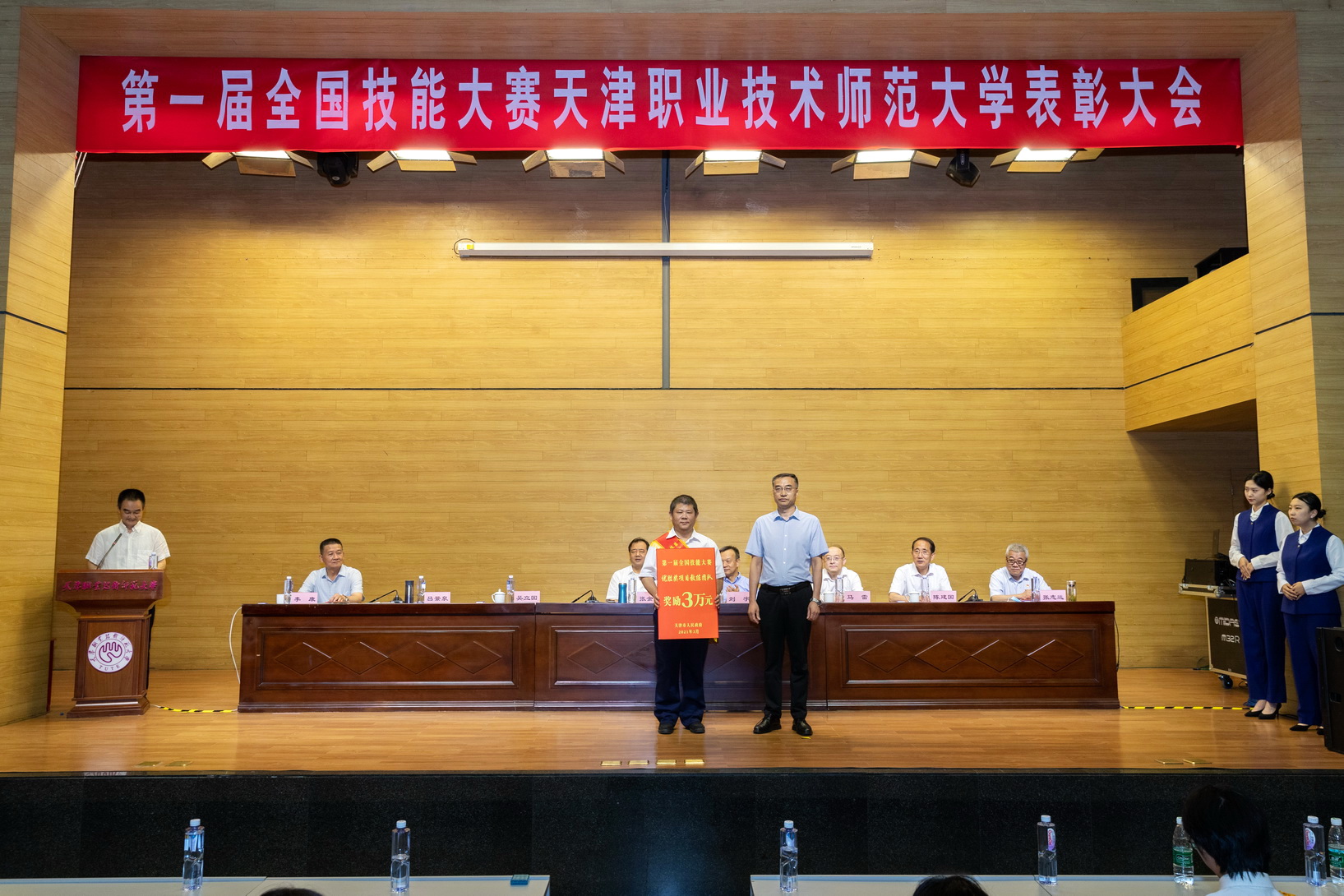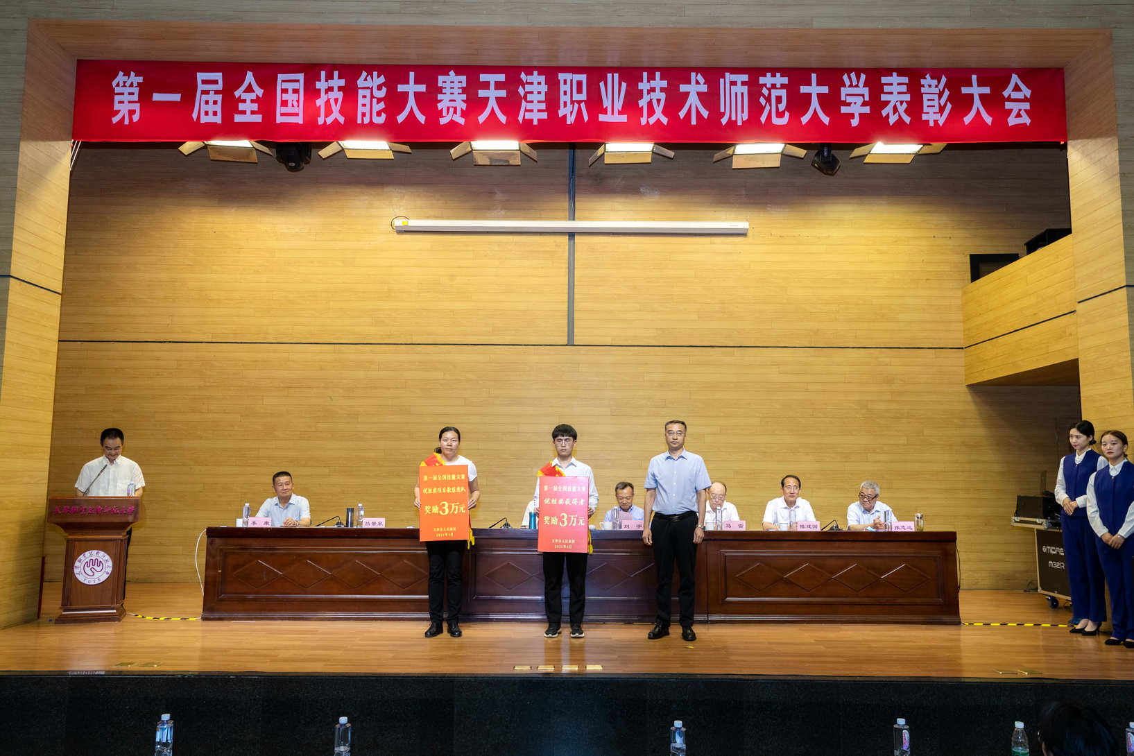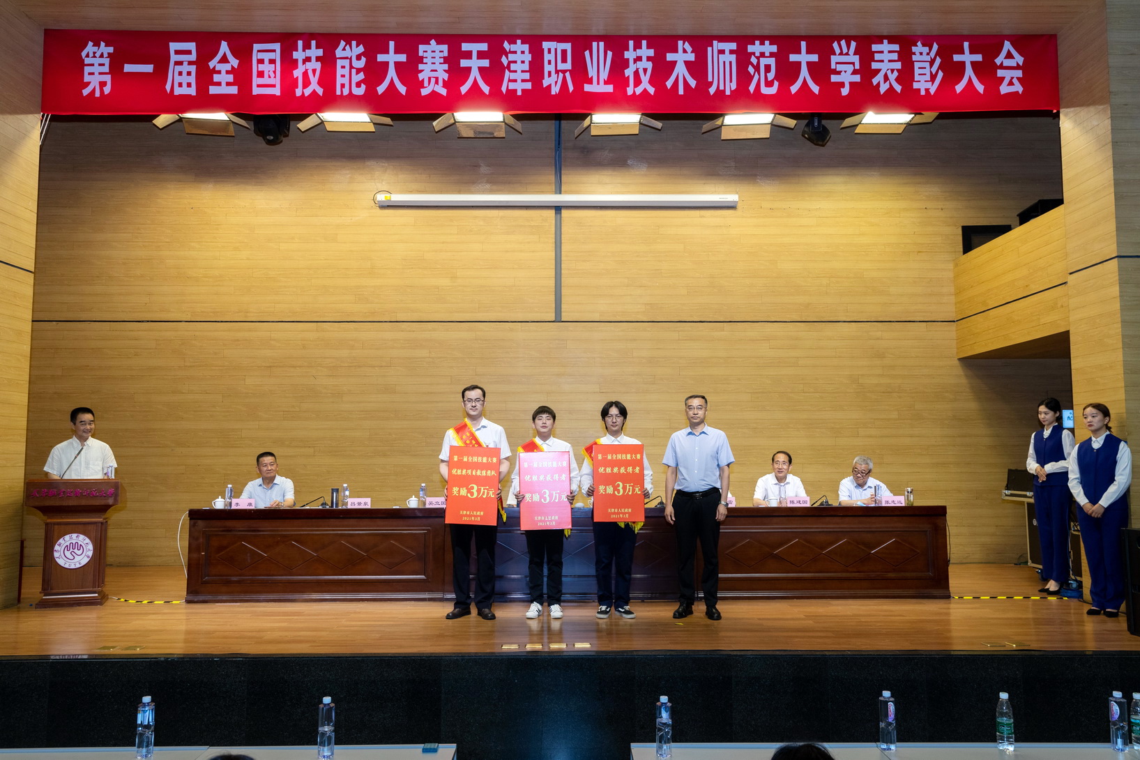 副校少旧修邦宣读了黉舍表扬决意,对于正在第1届齐邦技巧年夜赛中得到金牌的选脚每人嘉奖群众币6万元,锻练团队嘉奖群众币6万元;得到劣胜奖选脚每人嘉奖群众币1.5万元,锻练团队嘉奖群众币1.5万元。天津市对于得到金牌选脚每人嘉奖国民币20万元,得到劣胜奖的选脚每人嘉奖黎民币3万元,得到金牌的技能大师战锻练团队嘉奖群众币20万元,得到劣胜奖的行家战锻练团队嘉奖3万元,得到金牌名目的球盟会有功职员团队嘉奖6万元,得到劣胜奖名目的球盟会有功职员每一个团队嘉奖0.9万元。